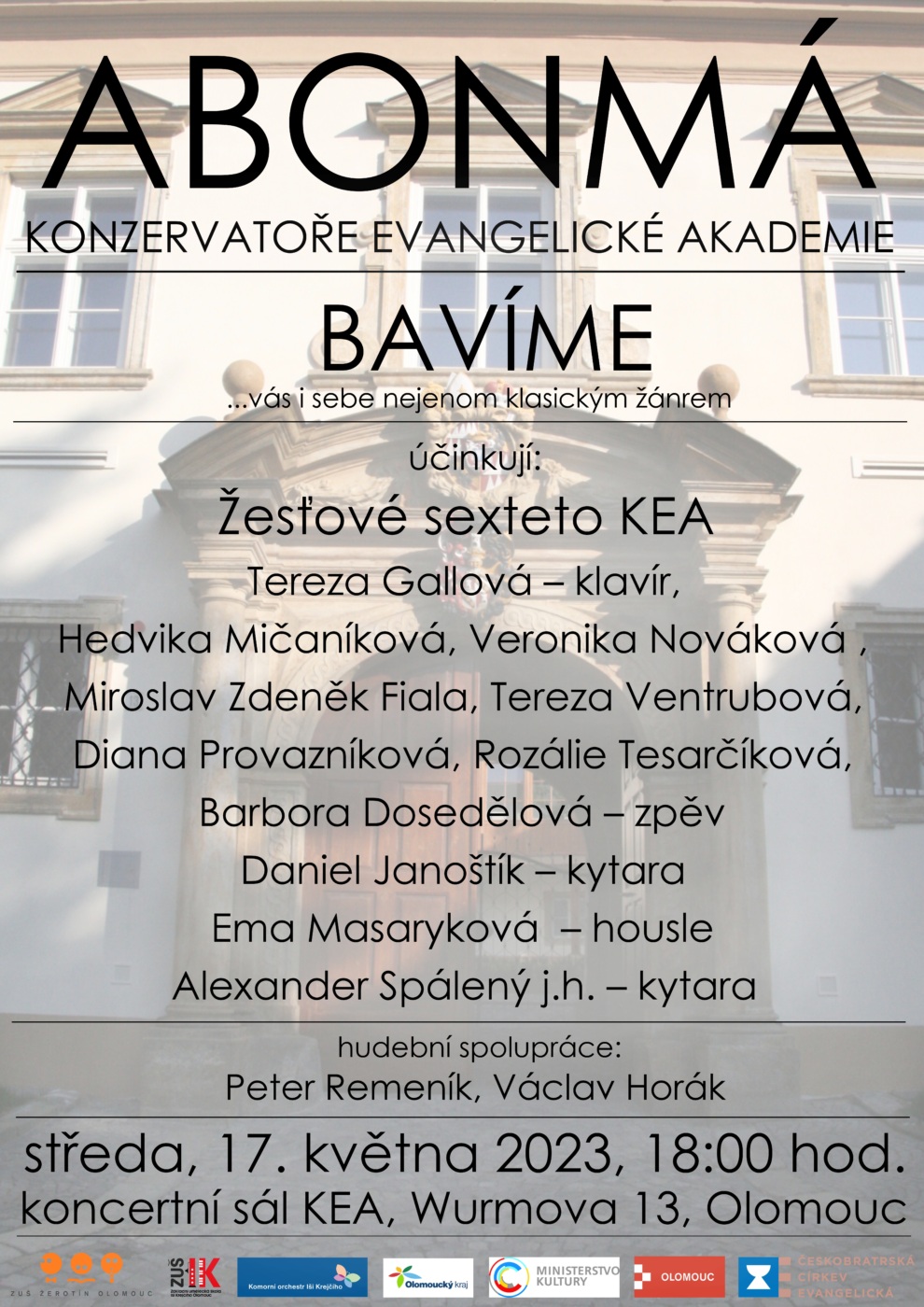 Abonentní koncert: „BAVÍME“ 17 | 5 | 2023 18:00 hod.Koncertní sál Konzervatoře EA, Wurmova 13, Olomouc