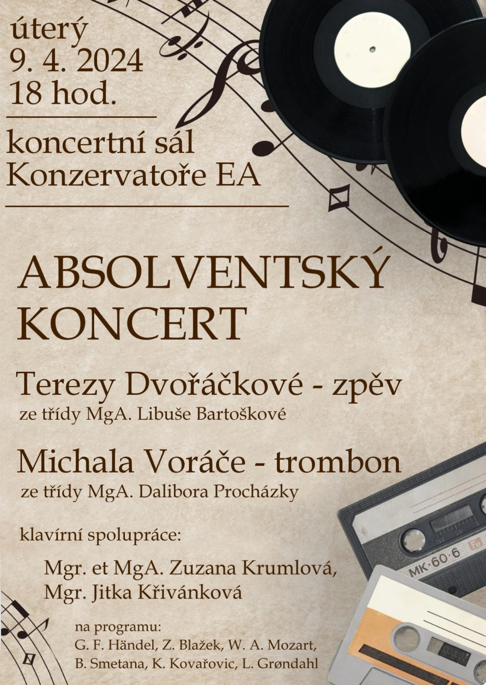 Absolventský koncert: Tereza Dvořáčková – zpěv, Michal Voráč – trombon