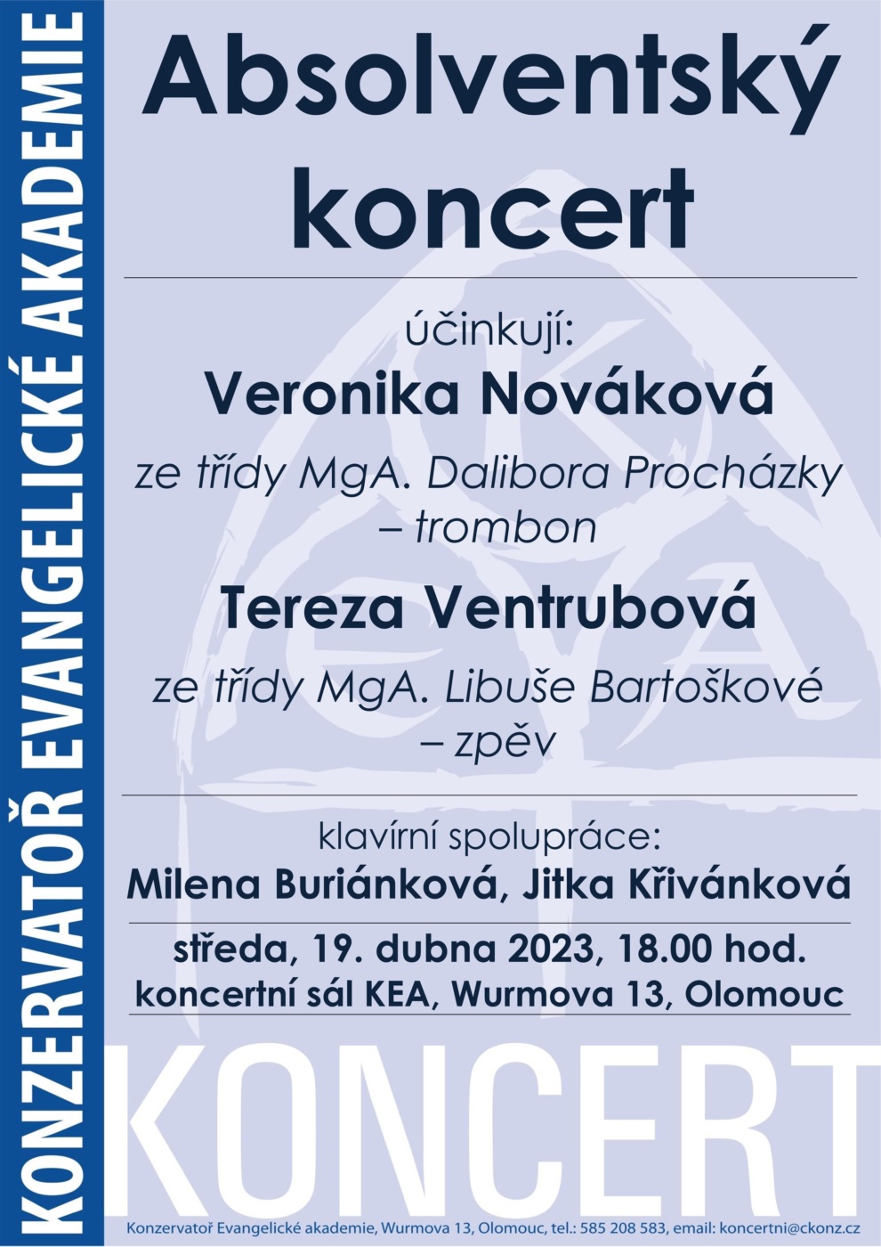 Absolventský koncert: Veronika Nováková – trombon, Tereza Ventrubová – zpěv