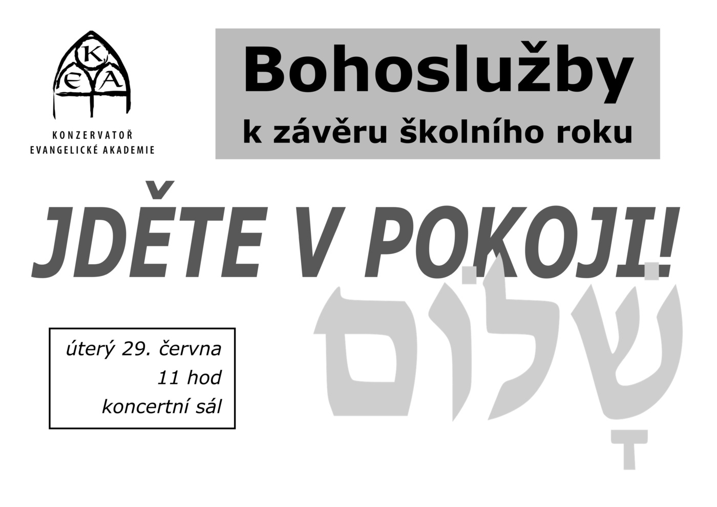 Bohoslužby k závěru školního roku 29 | 6 | 2021 11:00Koncertní sál Konzervatoře EA, Wurmova 13, Olomouc