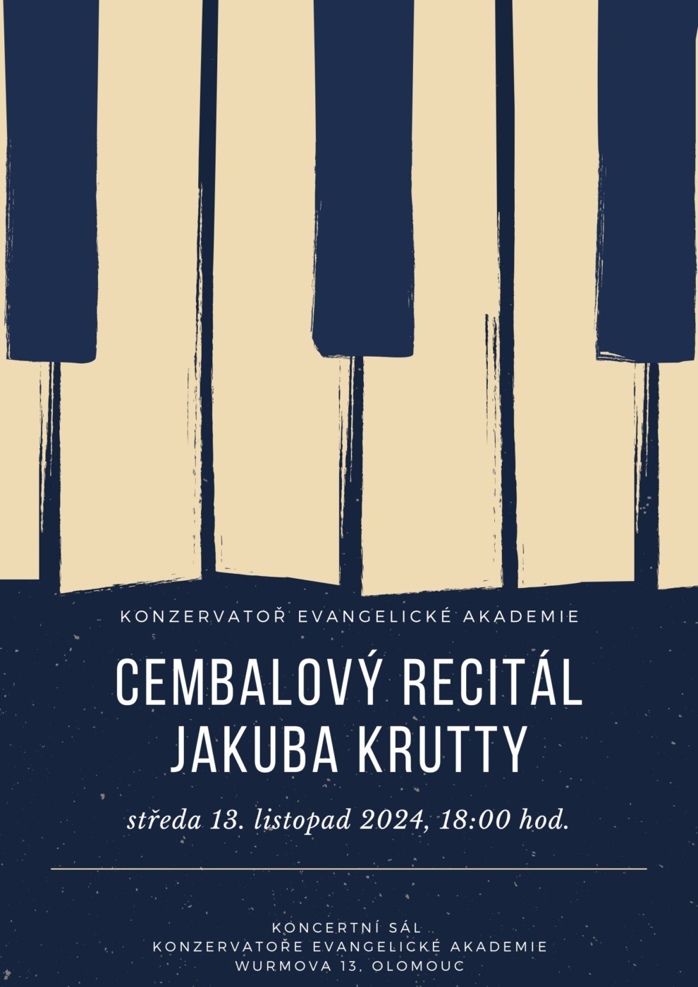 Cembalový recitál Jakuba Krutty 13 | 11 | 2024 18:30 hod.Koncertní sál Konzervatoře EA, Wurmova 13, Olomoucprogram:Bohuslav Martinů – Deux impromptusBohuslav Martinů – Sonata pour clavecinViktor Kalabis – Akvarely (Allegro ma non troppo, Andante, Allegro molto)Antoine/Jean-Baptiste Forqueray – Suita c moll (La Guignon, La Montigni, La Sylva, Jupiter)