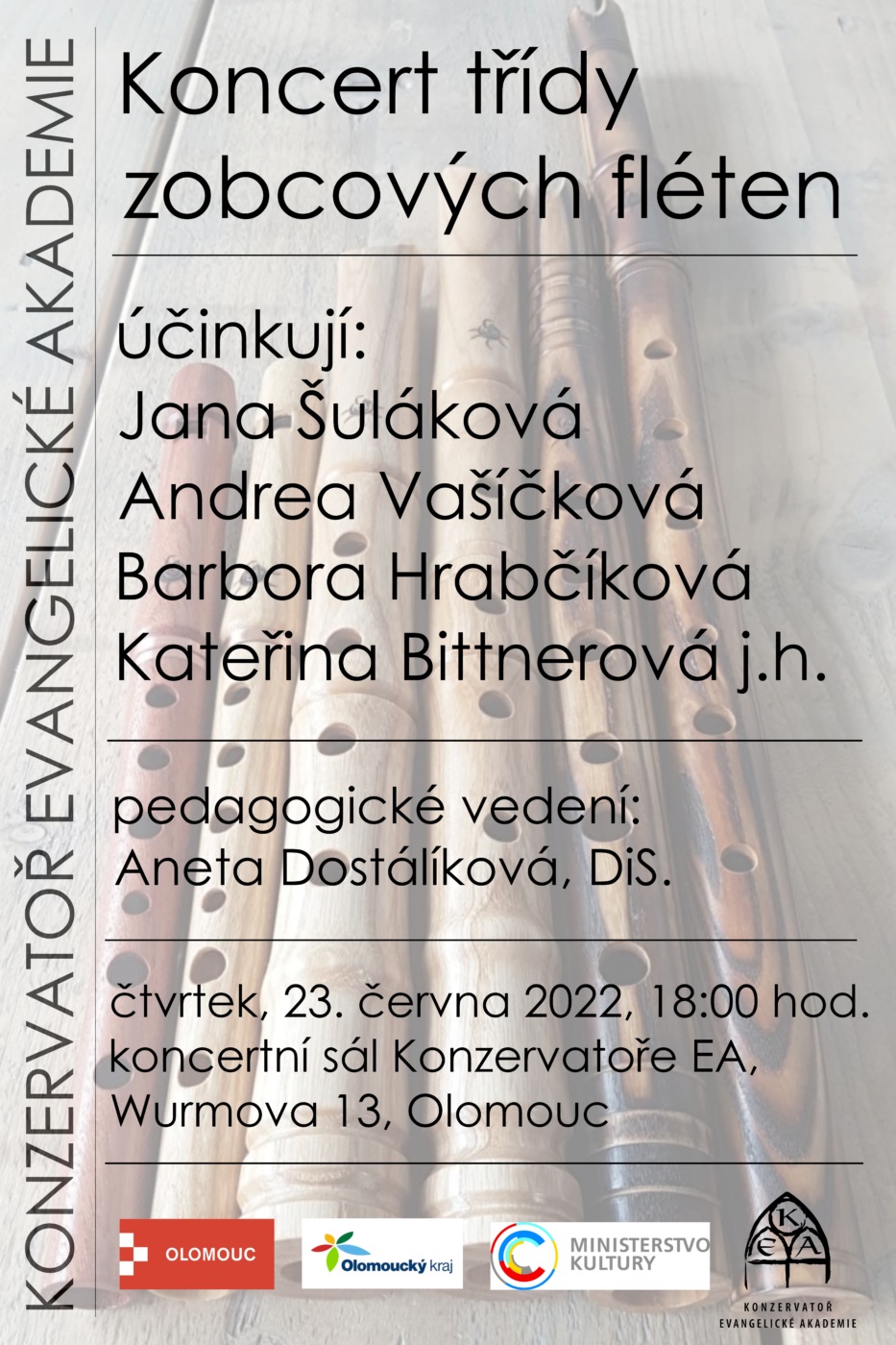 Koncert třídy Anety Dostálíkové – zobcová flétna 23 | 6 | 2022 18:00 hod.Koncertní sál Konzervatoře EA, Wurmova 13, Olomouc