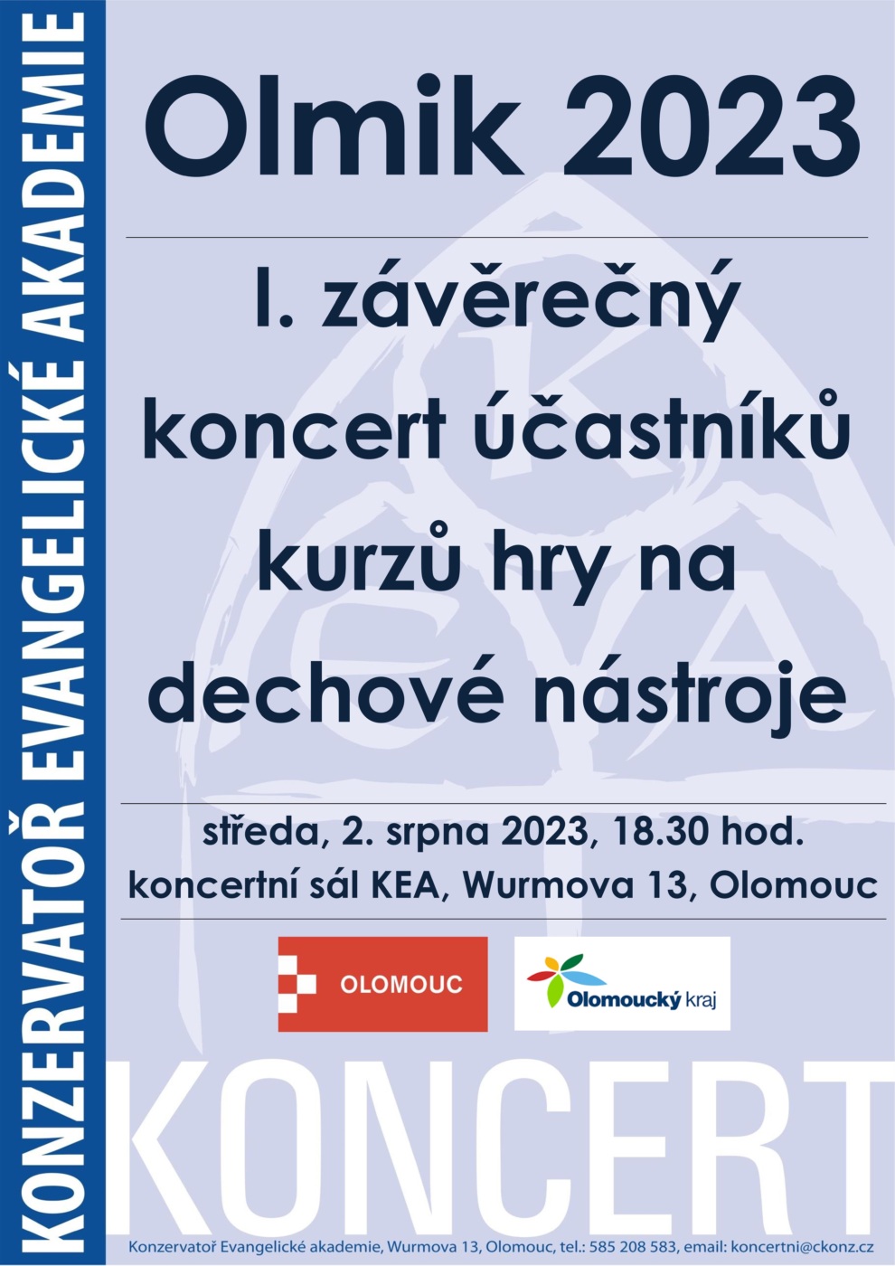 OLMIK 2023 – 1. KONCERT ÚČASTNÍKŮ KURZŮ DECHOVÝCH NÁSTROJŮ 2 | 8 | 2023 18:30 hod.Koncertní sál Konzervatoře EA, Wurmova 13, Olomouc