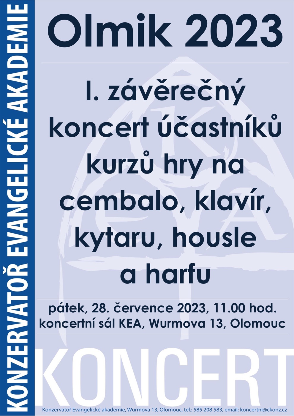 OLMIK 2023 – 1. ZÁVĚREČNÝ KONCERT ÚČASTNÍKŮ KURZŮ 28 | 7 | 2023 11:00 hod.Koncertní sál Konzervatoře EA, Wurmova 13, Olomouc